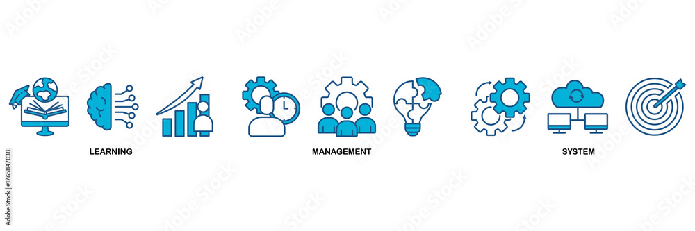 LMS icon set vector illustration concept for learning management system, educational courses, training and development programs with online learning, administration, growth, and automation icon #1765847038