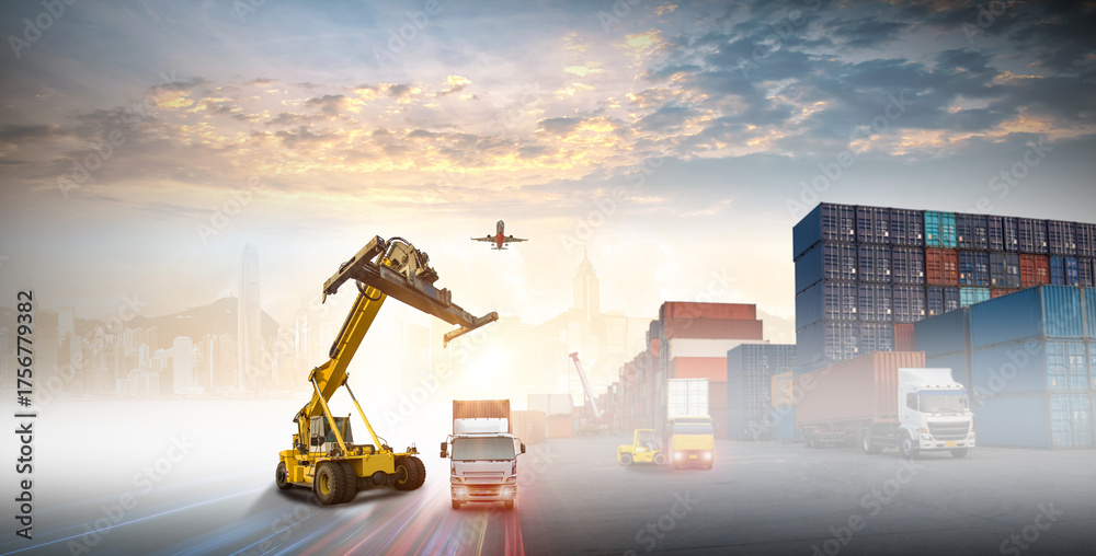 Logistics international delivery concept, World map with logistic network distribution on background for Concept of fast or instant shipping, Online goods orders worldwide #1756779382