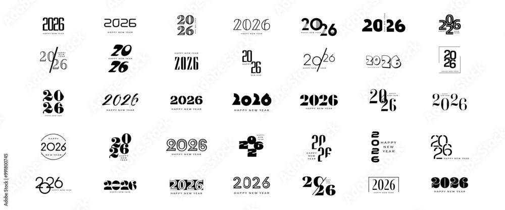 2026 logo concept for calendar, poster, flyer, banner. Modern design for calendar, invitations, greeting cards. Set of new year logo text design. stock illustration #991800745