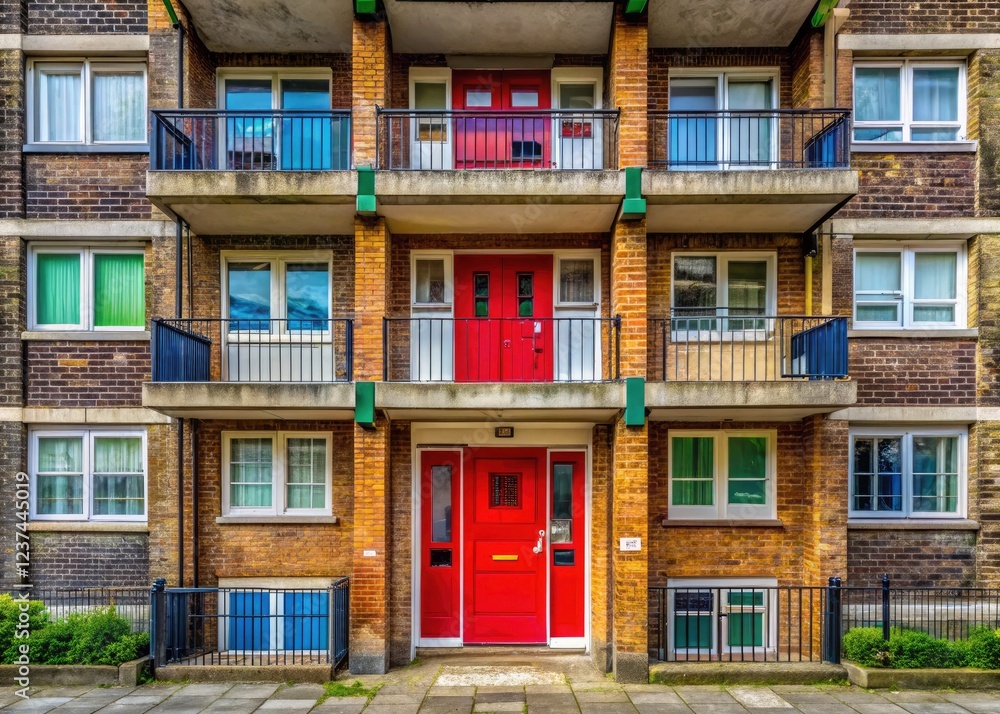 London council housing: A panoramic view of Rockingham Estate's distinctive flat doors. #1237445019
