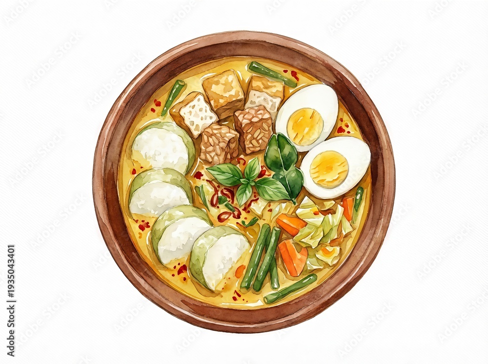 Lontong Sayur - Indonesian Vegetable Curry with Rice Cake and Egg. #1935043401