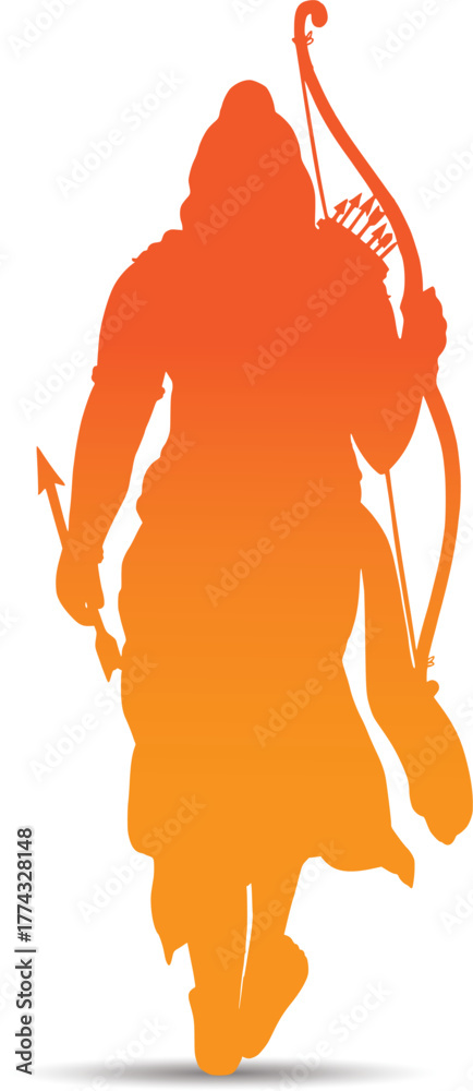 Lord Ram with bow and arrow in orange-yellow gradient, evoking strength, tradition, and divine symbolism on a clean white backdrop. #1774328148