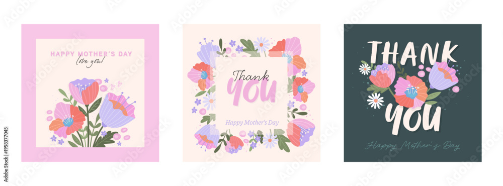 Lovely hand drawn Mother's Day designs, cute flowers and handwriting - great for cards, invitations, gifts, banners - vector designs #1958377045