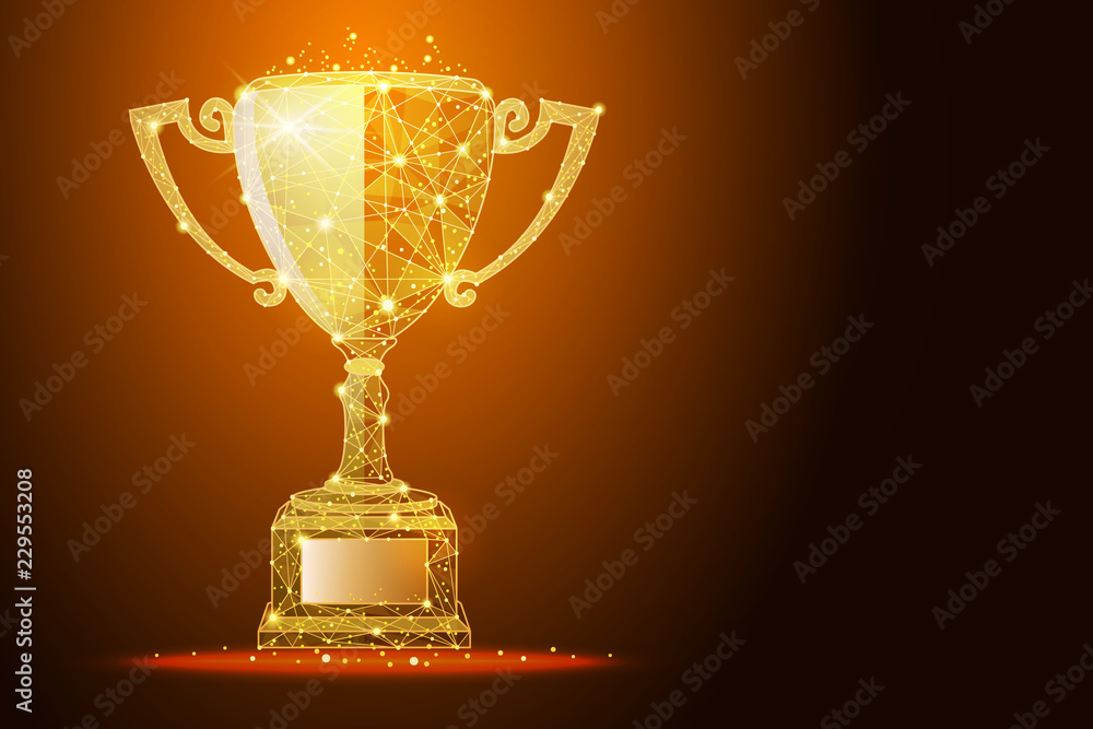 Low poly illustration of the winner cup a golden dust effect, with space for your text #229553208