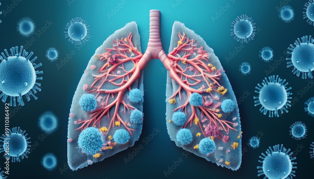 lung with tuberculosis long covid or asthma disease cancer cells virus and air pollution no tobacco day organ donation #1911086492