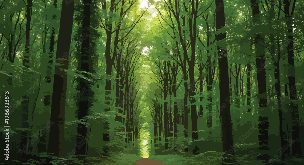 Lush Green Forest Path Vector Illustration isolated PNG with Transparent Background #1966923813