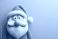 Lustige Weihnachtsfigur mit roter Mütze – festliche Deko auf blauem Hintergrund #1774540823