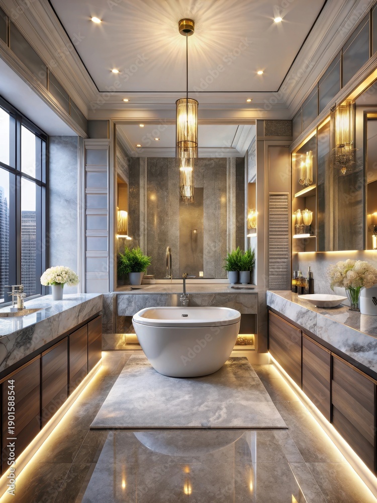 Luxe Bathroom Oasis Sleek Lines, Soft Lighting, and Elegant Accents Create a Peaceful Retreat #1901588544
