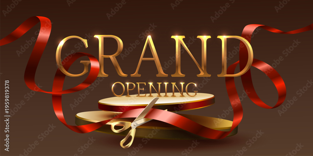 Luxurious Grand Opening banner with ribbon cutting ceremony. #1959819378