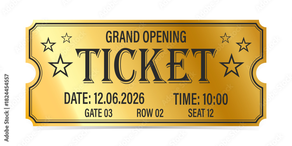 Luxury gold ticket for cinema and coupon template vector isolated. #1824454557