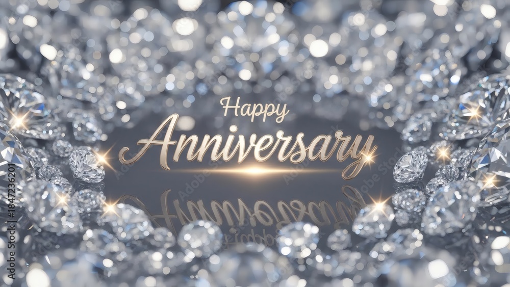 Luxury Happy Anniversary Greeting Banner Surrounded by Brilliant Sparkling Diamond Gems #1847236201