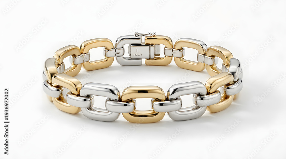 Luxury Interlocking Gold and Silver Toned Metal Chain Link Bracelet with Engraved Clasp #1936972002