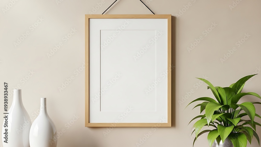Luxury minimal Wall frame mockup elegant neutral wall background with blank poster frame display modern gallery decoration template scene for artwork branding presentation and creative design #1938933467