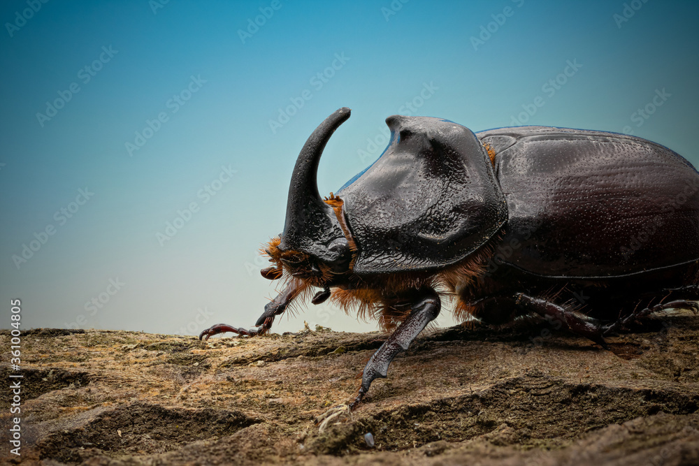 Macro shot of European rhinoceros beetle (Oryctes nasicornis) #361004805
