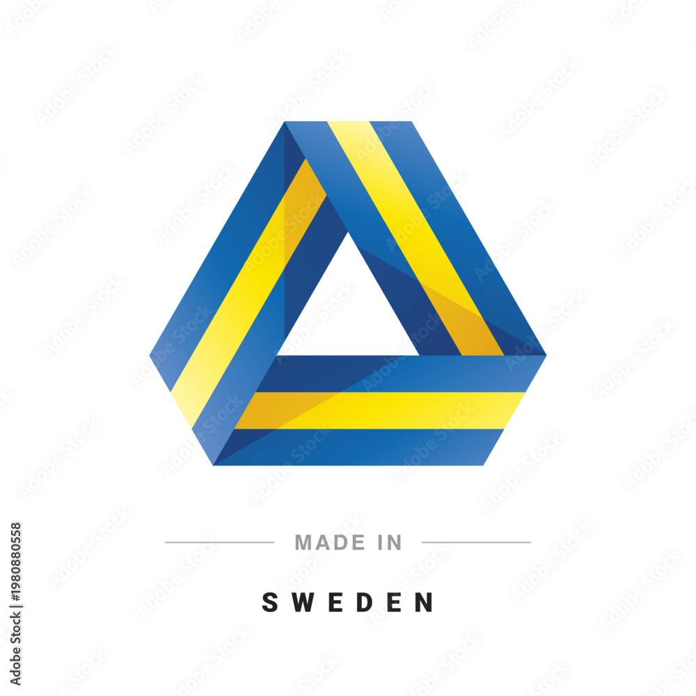 Made in Sweden new 3D triangle flag ribbon logo label banner #1980880558