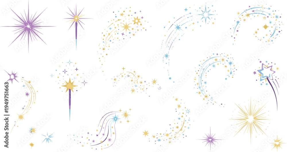 Magic sparkle trail and shooting star illustration set with glitter swirl twinkle celestial decorative collection #1949751663