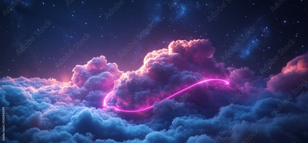Magical Dreamscape, Neon Light Above a Sea of Ethereal Clouds #1305840099