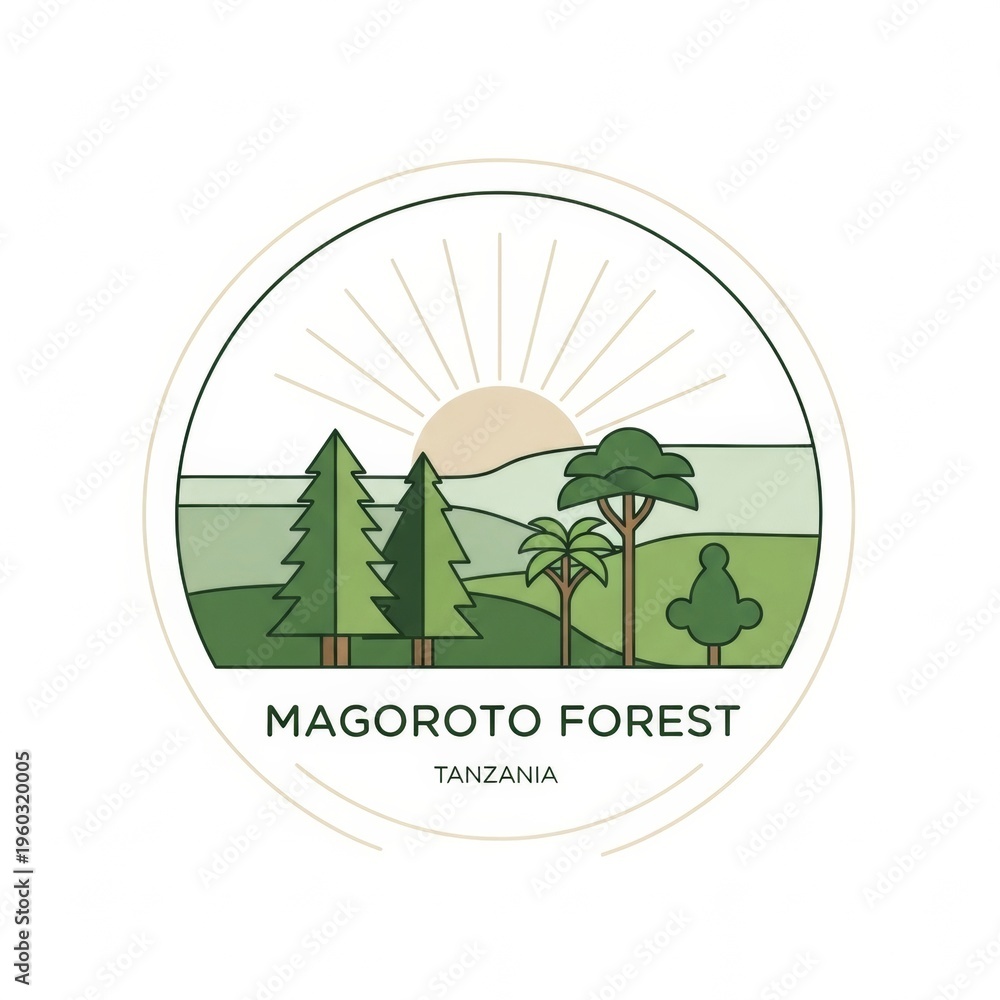 Magoroto Forest travel sticker design featuring tropical mountains, lush greenery, and scenic adventure vibes from Magoroto Forest Estate. #1960320005