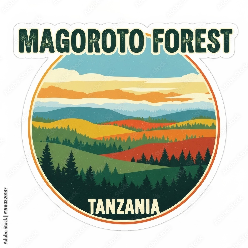 Magoroto Forest travel sticker design featuring tropical mountains, lush greenery, and scenic adventure vibes from Magoroto Forest Estate. #1960320137