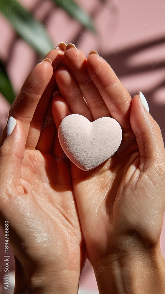 Mains protégeant délicatement un cœur blanc symbole d'amour #1894766880