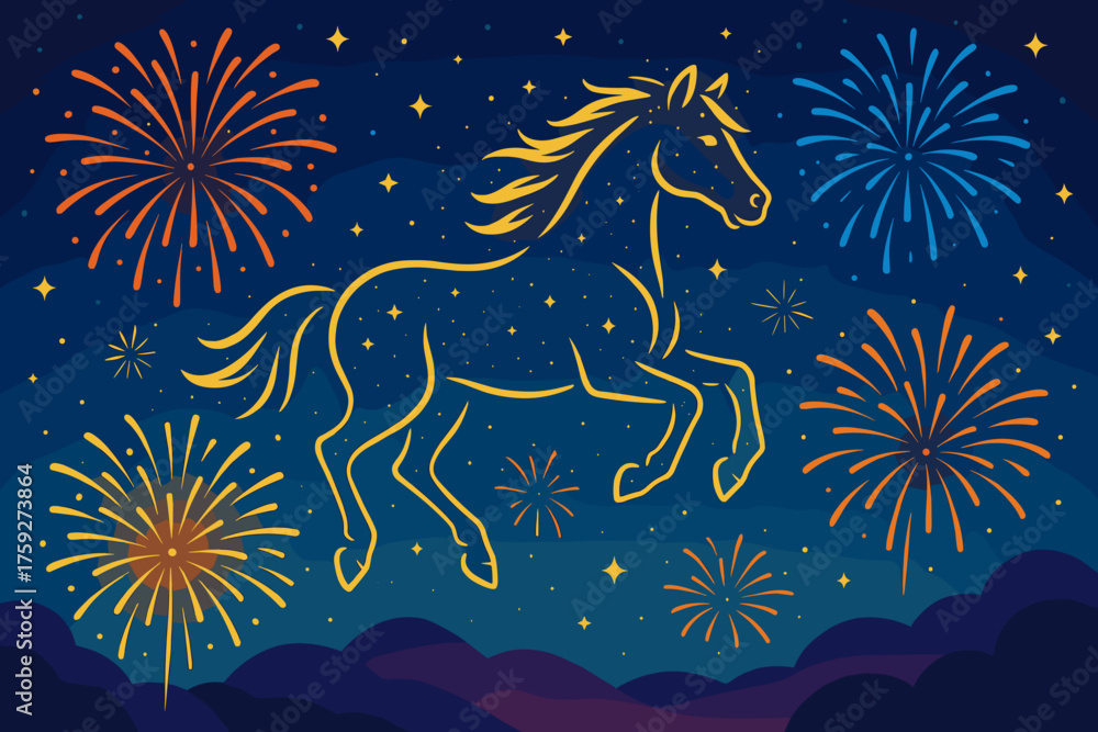 Majestic horse silhouette illuminated by fireworks in a starry night sky #1759273864