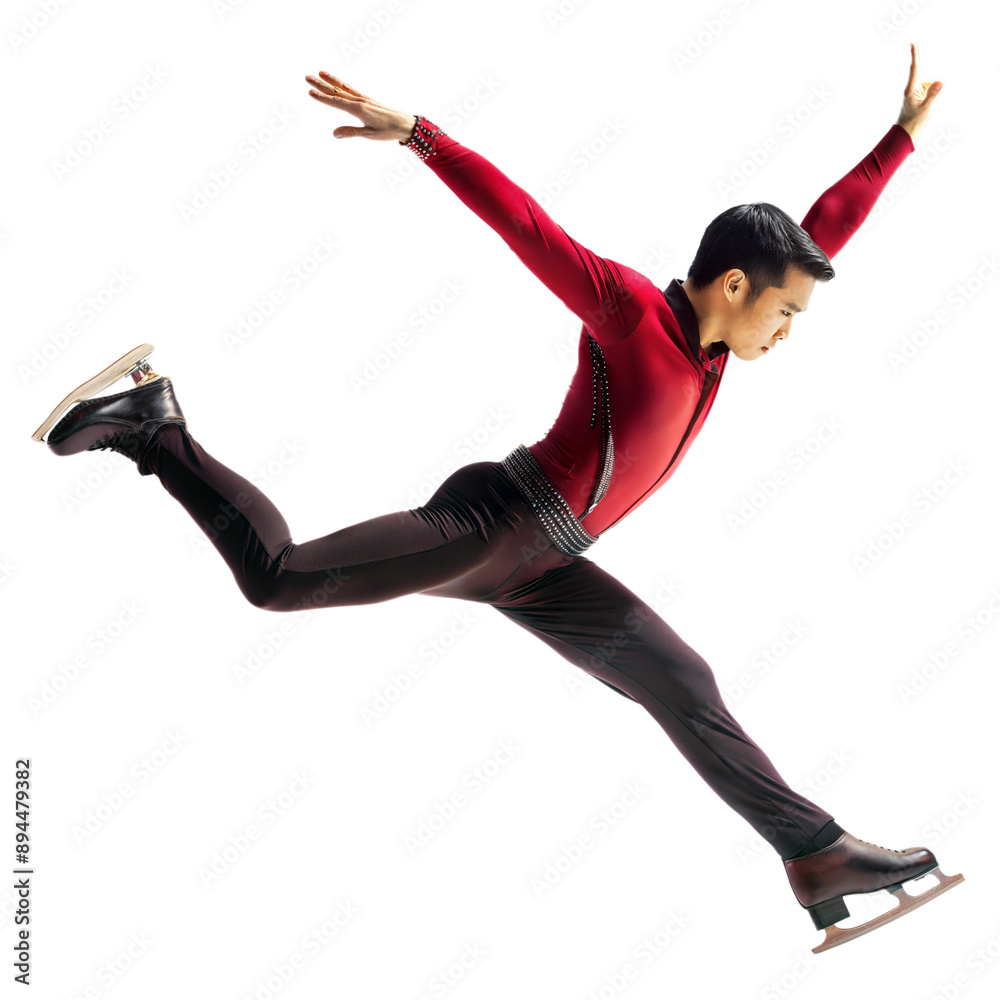 Male figure skater performing a jump, displaying grace and technique #894479382