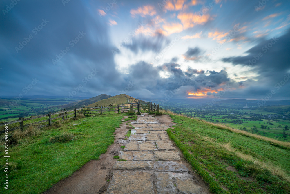 Mam Tor mountain on cloudy sunrise. Peak District. England #1721790280