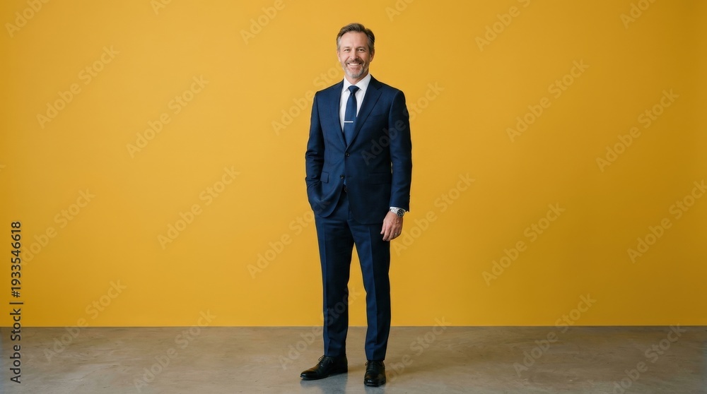 Man in Suit Standing Against Yellow Wall. #1933546618