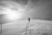 Man mountaineer walking with snow footprint on peak ridge #243620038