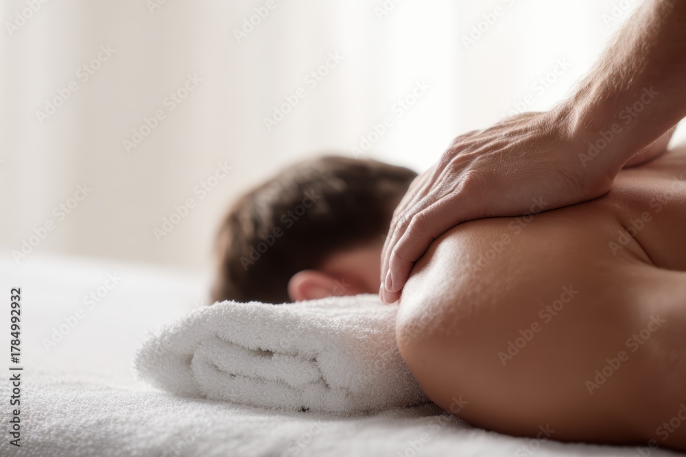 man receiving massage therapy, relaxation and muscle recovery concept #1784992932