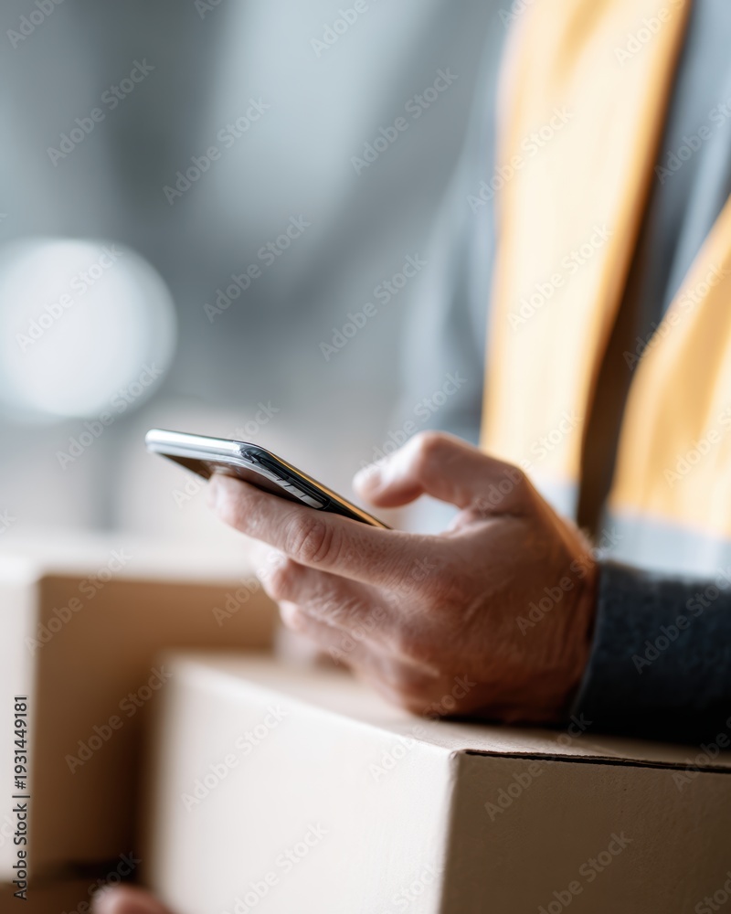 Man scanning delivery barcode using smartphone logistics app #1931449181