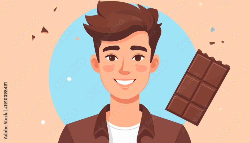 Man Smiling with Chocolate Bar Illustration #1910098491
