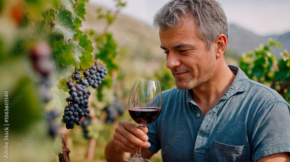 Man tasting wine in vineyard, Mendoza, Argentina, wine #1063605140