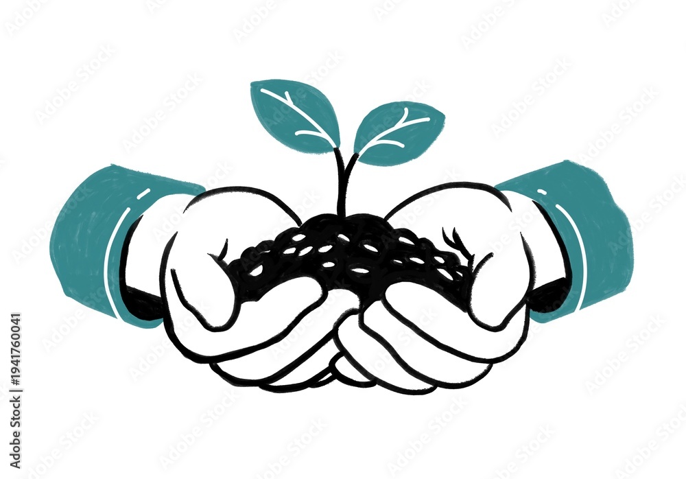 Manos de persona sosteniendo una plantita nueva. Representa el concepto de sostenibilidad. #1941760041