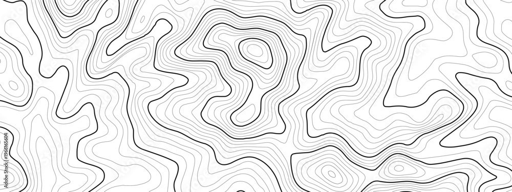 Map contour backdrop art for area line and outline drawing. Geographic geology hiking radar pattern with ocean navy dark chart wide location. Depth ground landscape background territory element. #1966165604