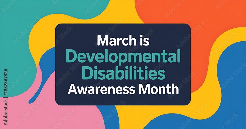 March is developmental disabilities awareness month with colorful abstract background promoting inclusion understanding and support for people with disabilities #1932367326