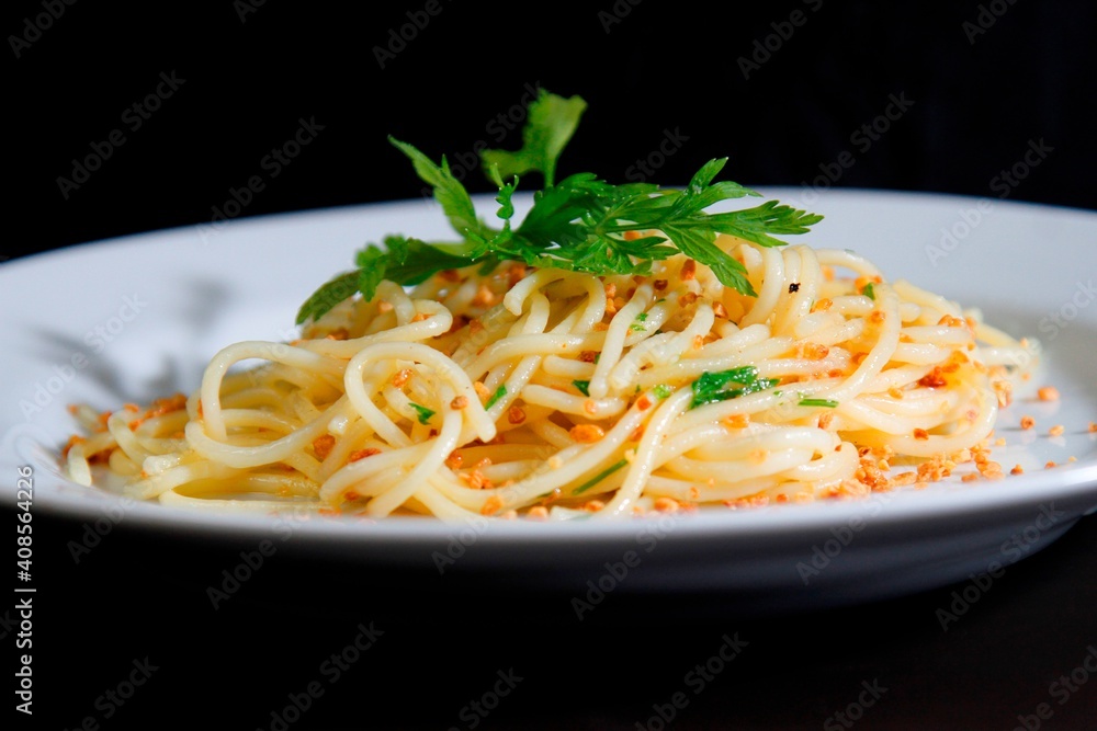 Massa bolonhesa dos espaguetes com molho de tomate, filé de carne, filé frango, vegetais, legumes e carne triturada. #408564226