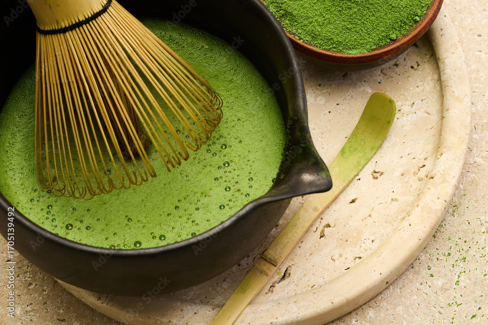 Matcha Tea Preparation. A traditional matcha tea ceremony setup #1705139492