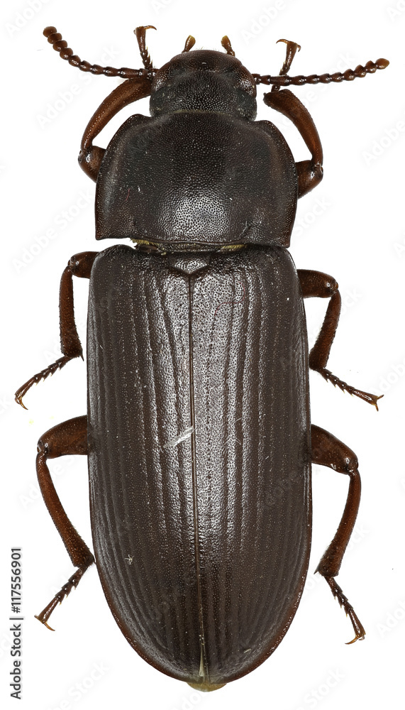 Mealworm Beetle on white Background - Tenebrio molitor (Linnaeus, 1758) #117556901
