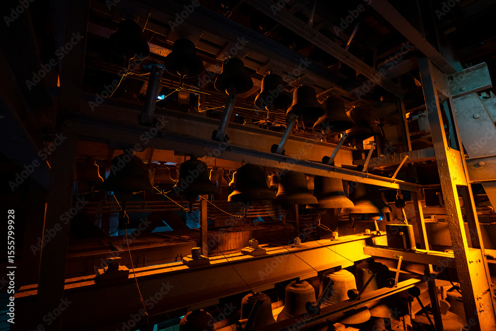 Mechanism of carillon bells in the belfry of Douai, Nord, Hauts-de-France, France. 12-29-2024. #1555799928
