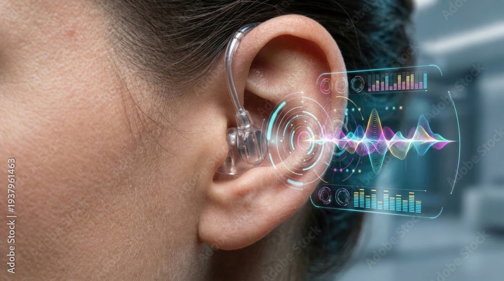 Medical illustration of hearing device technology clinical setting visual content close-up perspective innovation and health #1937961463