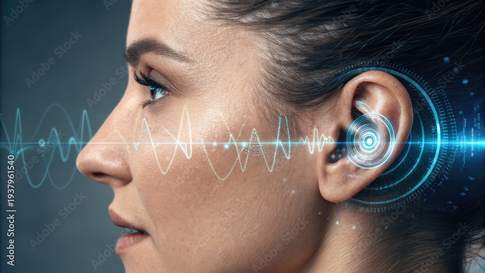Medical illustration of hearing technology human anatomy digital visualization studio environment side view #1937961540