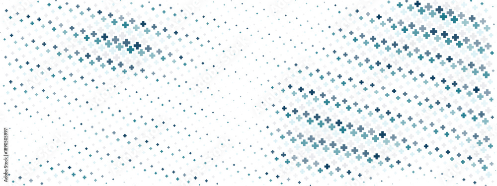 Medical pattern with blue and green crosses arranged in diagonal stripes, perfect for hospital websites, healthcare presentations, and clinical backgrounds. #1890505997