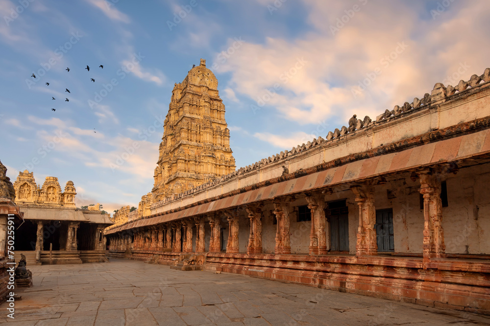 • #750255911 Medieval architecture stone structure with archeological ruins of Virupaksha temple at Hampi, Karnataka, India.