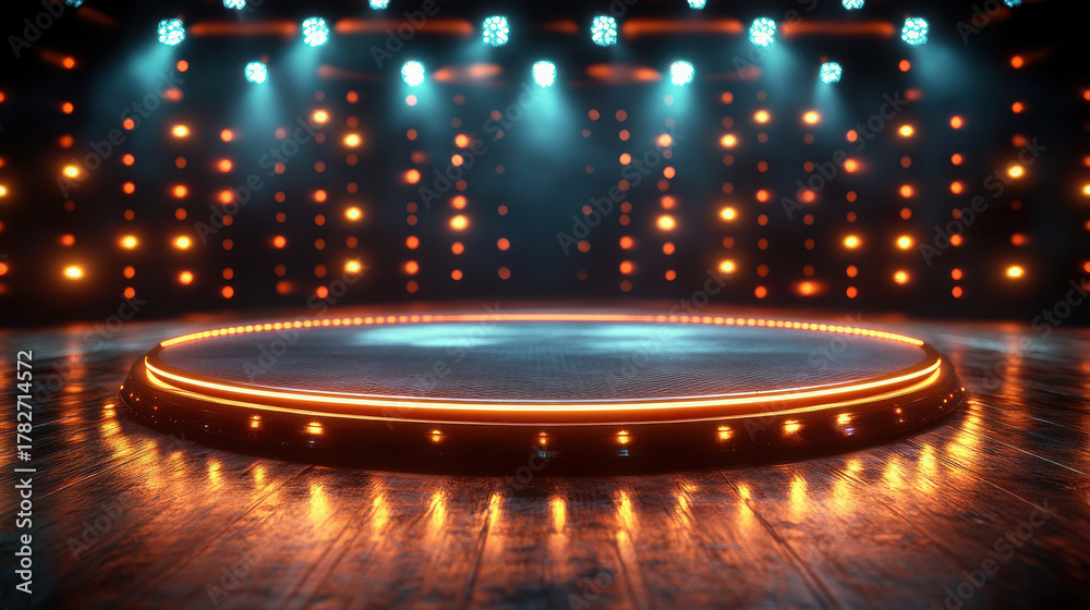 Medium close-up of a presidential campaign stage with a central podium framed by blurred American flags, captured in high-resolution with warm indoor tones and natural lighting for an authentic atmosp #1782714572