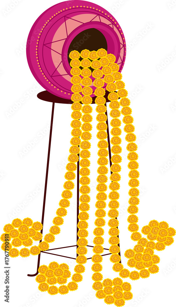 mehndi and haldi decorative hangings floral pot backdrop for Indian wedding function decor vector illustration #1767790911