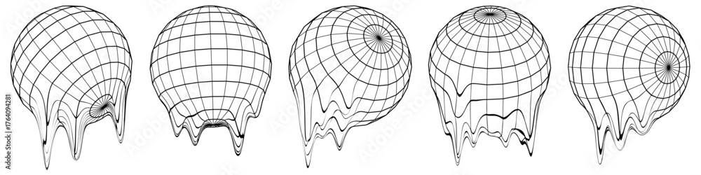 Melted Globe grid spheres. Striped 3D spheres, geometry globe grid, earth latitude and longitude line grid #1764094281