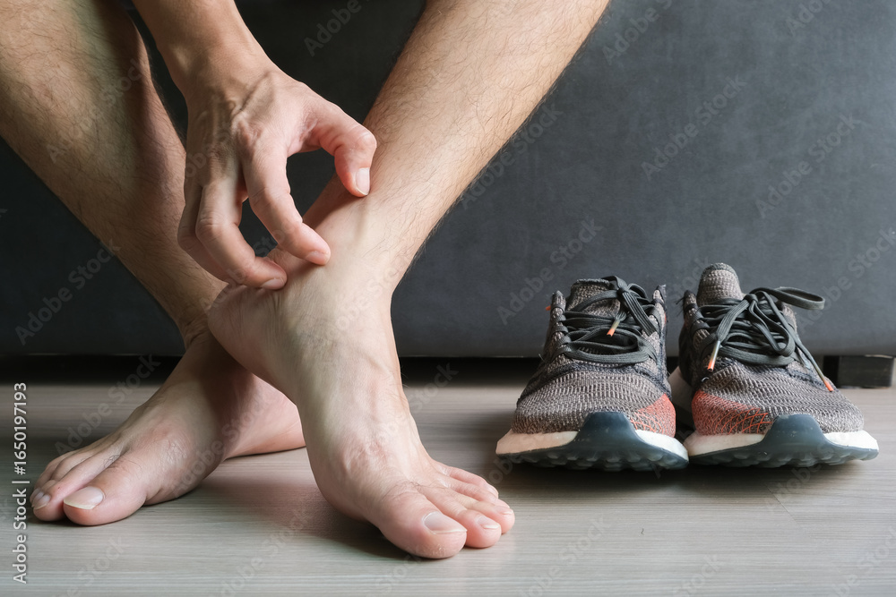 Men wear canvas shoes, he scratches legs and feet with itchy skin. Caused by of shoes #1650197193