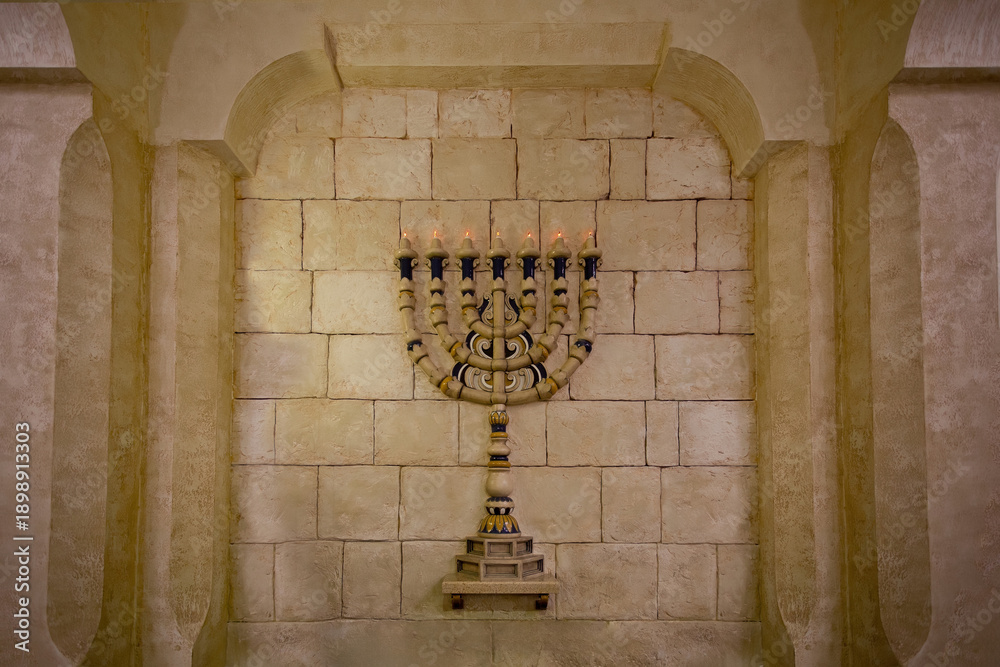 Menorah candlestick on the wall of the Synagogue #1898913303