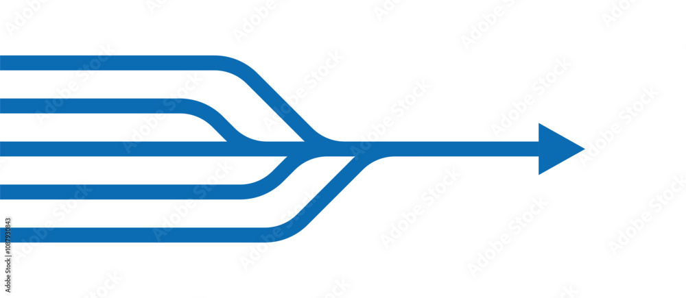 Merging arrows streamline process concept image. Clipart image isolated on white background. #1087930843